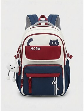 Mochila de poliéster para mujer, diseño con estampado de gato, compatible con correas para equipaje, gran capacidad, correas de hombro ajustables, varios colores, ideal para la vuelta al cole, viajes, actividades al aire libre y uso diario informal.