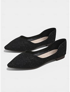Bailarinas de mujer con punta y purpurina, elegantes zapatos de vestir sin cordones para fiestas en el jardín o bodas. &eventos al aire libre