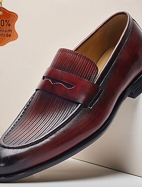 Mocasines burdeos para hombre: zapatos de vestir clásicos sin cordones con punta redonda para negocios, oficina y eventos formales.