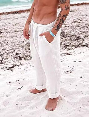 Hombre Pantalones de lino Pantalones Pantalones de verano Pantalones de playa Bolsillo Correa Plano Comodidad Transpirable Vacaciones Diario Festivos Hawaiano Boho Blanco