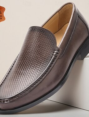 Mocasines de cuero trenzado marrón para hombre con textura artesanal, zapatos casuales de negocios sin cordones para caballeros, ideales para la oficina, banquetes, reuniones formales y vestimenta elegante informal.