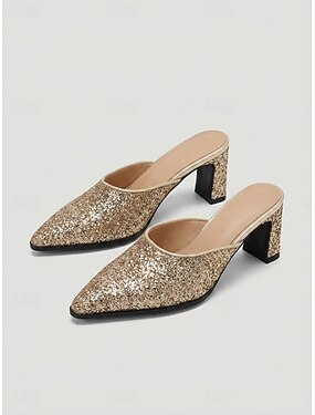 Zapatos de tacón de aguja con punta metálica y tira en el talón para mujer - Zapatos de salón con hebilla de perlas y tacón esculpido para fiestas nocturnas y discotecas &atuendos de noche