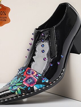Mocasines de piel negra para hombre con bordado floral: calzado de primera calidad para bodas y cenas formales.