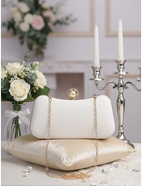 Mujer Cartera Bolso de noche Bolso de Noche Monedero Piel Fiesta Fiesta de Boda Detalles con Perlas Color sólido Oro / Blanco Almendra