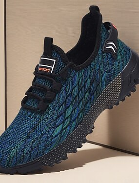 Zapatillas deportivas de punto azul marino para hombre, transpirables y flexibles, ideales para correr, caminar y actividades informales al aire libre.
