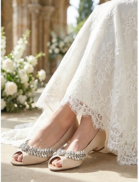 Sandalias de boda de tacón bajo con adornos de champán para mujer: elegantes zapatos de novia para bodas en el jardín.