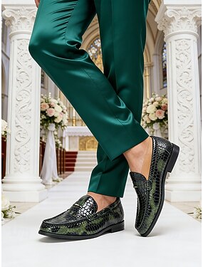 Zapatos de vestir de piel sintética con efecto cocodrilo naranja para hombre: calzado formal para negocios y bodas para caballeros modernos.