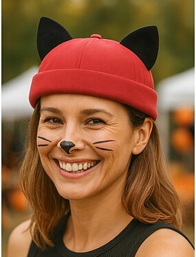 Gorro con orejas de gato para Halloween para mujer: bonito gorro de cosplay con correa ajustable, diseño de orejas de gatito de tela suave para fiestas, festivales y disfraces.