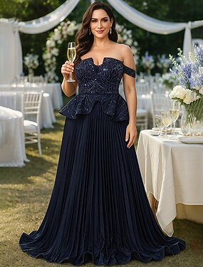 Corte Trompeta Sirena Hasta el Suelo Bordado con cuentas Vestido formal Vestido de madre de la novia Vestidos de noche Vestimenta formal Elegante Reluciente Estilo de Celebridad Sin Mangas Un Hombro