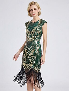 Rugido 20s 1920s Retro Antiguo Hasta la Rodilla Vestido Flapper Sin Mangas El gran Gatsby charlestón Lentejuelas Borlas Disfraz Mujer Víspera de Todos los Santos Carnaval bar clandestino Fiesta y