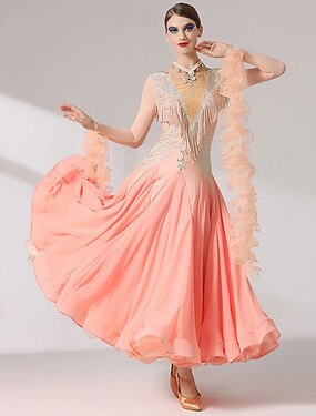 Baile de Salón Vestido Plisado Borla Corte Mujer Rendimiento Entrenamiento Manga Larga Cintura Alta Licra Gasa Seda Sintética