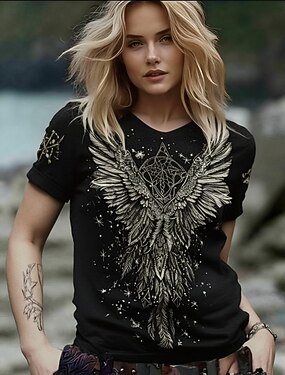 Camiseta Boho Nórdica de Mujer Gráfica Letra Vintage Estilosa Clásica Manga Corta Cuello Redondo Tops Regulares Diario Impresión Negra Verano Primavera Otoño Invierno