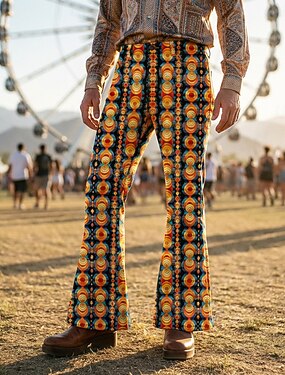 Retro Antiguo Boho Años 70 Pantalones Los pantalones de campana Hippie Disco Alta cintura Geométrico Disfraz Hombre Víspera de Todos los Santos Carnaval Festival de Música Fiesta temática retro Adulto