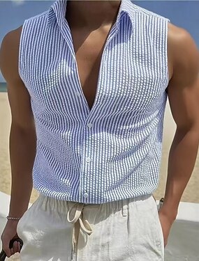 Hombre Camisa Camisa casual Camisa de sirsaca Abotonar la camisa Azul Piscina Negro Blanco Verde Claro Rosa Sin Mangas Rayas Tiras verticales Cuello Camisero Casual Diario Botones Ropa Elegante Moda