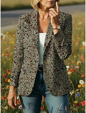 Mujer chaqueta Mantiene abrigado Cómodo Bolsillo Botones Estampado Diario Casual Abstracto Casual Oficina Formal Botonadura Simple Regular Diseño Ajuste regular Manga Larga Ropa de calle Verde Trébol