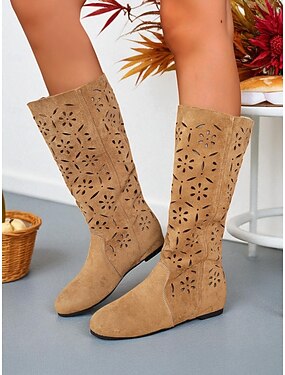 Botas holgadas de media pantorrilla para mujer con diseño de recorte floral, estilo bohemio informal para la calle otoñal y el uso diario.