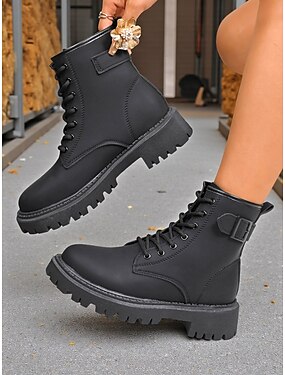 Botines clásicos con cordones para mujer: botas de combate duraderas para el trabajo, ideales para otoño, invierno y para uso casual al aire libre.