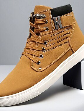 Zapatillas altas de piel sintética color canela para hombre con diseño de cordones, elegantes zapatos casuales para caminar, trabajar y para el fin de semana.