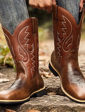 Hombre Botas Botas cowboy Bordado Retro Zapatos de Paseo Vintage Exterior Diario Cuero PU Cómodo Antideslizante Transpirable Mitad de Gemelo Sin Cordones Negro Marrón Verano Primavera Otoño