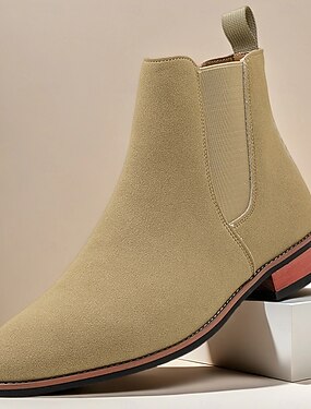 Botas Chelsea beige para hombre con diseño minimalista y comodidad sin cordones, estilo moderno de botín para caballero, adecuadas para atuendos casuales elegantes y ropa de fin de semana.