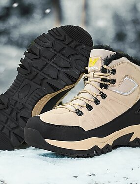 Botas de senderismo impermeables para hombre en beige y negro con suela antideslizante y forro cálido, botas de trekking al aire libre para acampar en invierno y aventuras en la montaña.