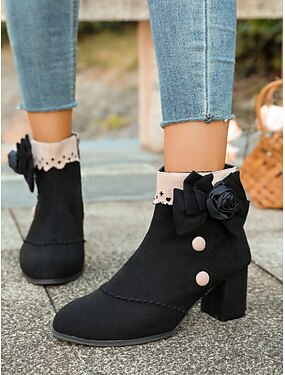 Mujer Botas Botines chelsea Diario Floral Botines Botines Flor Tacón Cuadrado Dedo Puntiagudo Bohemia Ante Cremallera Negro