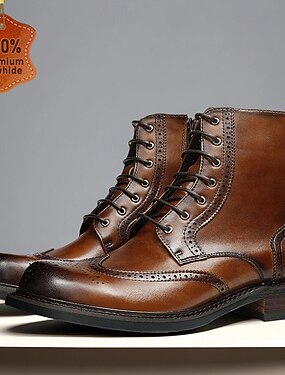Botas de tobillo con cordones y diseño brogue marrón para hombre, botas de trabajo resistentes para exteriores con punta de ala clásica para negocios, viajes y uso diario.