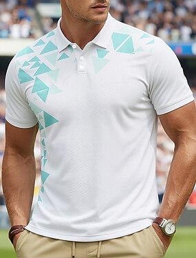 Hombre Geométrico Camisetas polo Manga Corta Camisas de polo Camisas con cuello Casual Ropa Deportiva Botones Primavera verano Azul Piscina Blanco Morado