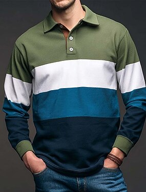 Hombre Tiras horizontales Polo de rugby Manga Larga Camisas de polo Camisas con cuello Ropa deportiva Casual Exterior Escuela Ropa Deportiva Impresión 3D Botones Primavera Otoño Azul Piscina Marrón