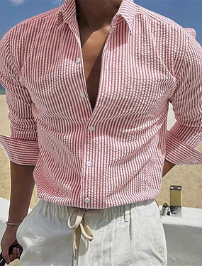 Hombre Camisa de gofres Camisa de verano Camisa casual Camisa de punto gofrado Blanco Verde Claro Rosa Gris Oscuro Albaricoque Manga Larga Con Texturas Moda Cuello Vuelto Vacaciones Festivos Ropa