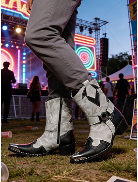 Botas de tacón bloque de cuero multicolor Mardi Gras para mujeres con diseño ondulado cómodas y vibrantes ideales para carnaval y ocasiones festivas