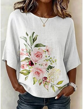 Mujer Camisa Estampado Bloque de color Flor Diario Elegante Básico Media Manga Escote en Pico Tops regulares Diario Festivos Azul Piscina Verde Trébol Beige Primavera Otoño