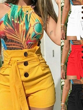 Mujer Pantalón corto Pantalones de verano Pantalones cortos de verano Pantalones cortos de playa Vacaciones Moda Casual / Diario Corto Alta cintura Color sólido Plano Correa Cremallera Comodidad