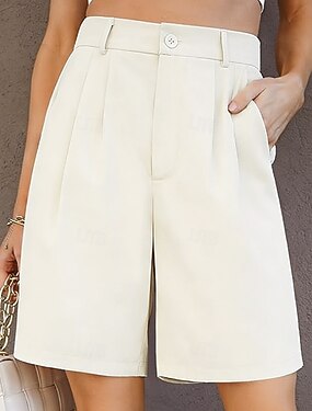 Mujer Bermudas Chinos Pantalones plisados Vacaciones Ropa de calle Casual Corto Media cintura Plano Bolsillo Transpirable Microelástico Diario Exterior Trabajo Negro Blanco Champaña Verano Primavera