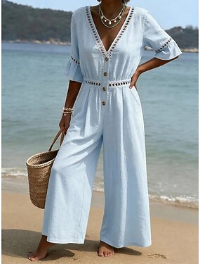 Mujer Normal Mono Activo Color sólido Media Manga Perneras anchas Escote en Pico Diario Playa Ajuste regular Azul Piscina Negro Rosa Verano