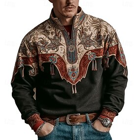 Hombre Tribal Cowboy Sudadera Étnico retro de la vendimia Manga Larga Escote Chino Exterior Trabajo Regalo Marrón Caqui Marrón 2 Cremallera Otoño Invierno Diseñador S M L XL XXL XXXL