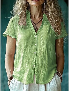 Mujer Camisa Color sólido Elegante Casual Sin Mangas Manga Corta Escote en Pico Tops regulares Diario Festivos Noche Blanco Verde Claro Rosa Rojo Color Camello Verano Primavera