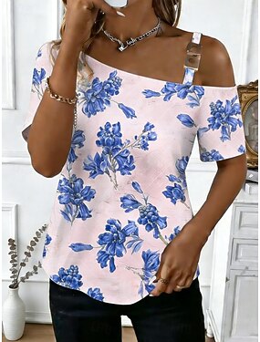 Mujer Blusa Camiseta sin mangas tipo camisola Estampado Floral Elegante Moderno Casual Manga Corta Escote en Pico Tops regulares Diario Festivos Noche Negro Verano Primavera