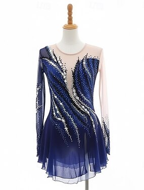 Vestido de patinaje artístico Mujer Chica Patinaje Sobre Hielo Vestidos Azul Retazos Malla Alta elasticidad Entrenamiento Competición Ropa de Patinaje Clásico Cristal / Strass Manga Larga Patinaje