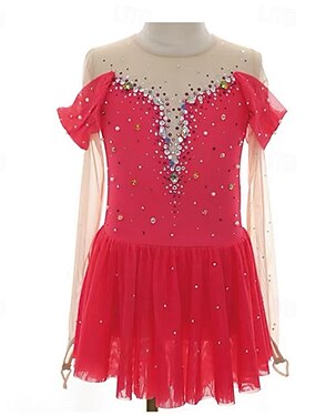 Vestido de patinaje artístico Mujer Chica Patinaje Sobre Hielo Vestidos Rosa oscuro Retazos Dedo Pulgar Malla Licra Elástico Entrenamiento Profesional Competición Ropa de Patinaje Mantiene abrigado
