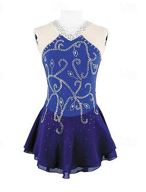 Vestido de patinaje artístico Mujer Chica Patinaje Sobre Hielo Vestidos Azul Retazos Espalda Abierta Malla Licra Elástico Entrenamiento Profesional Competición Ropa de Patinaje Mantiene abrigado