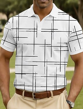 Hombre Geométrico Línea Camisetas polo Manga Corta Camisas de polo Camisas con cuello Casual Ropa Deportiva Botones Verano Primavera Azul Piscina Blanco Marrón