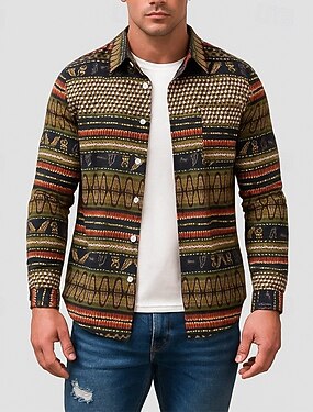 Hombre Camisa Camisa casual Abotonar la camisa Rojo Marrón Manga Larga Geométrico A Rayas Diseño Casual Diario Ropa Moda Estilo Étnico Casual