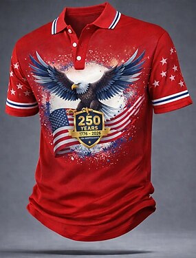 4 de julio de 2026, 250 aniversario Hombre Bandera estadounidense de los Estados Unidos Camisetas polo Manga Corta Camisas de polo Camisas con cuello Casual Ropa de calle Ropa Deportiva Botones Malla