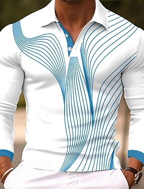 Hombre Geométrico Línea Polo Manga Larga Camisas de polo Diseño Casual Calle Ropa Deportiva Ropa Cotidiana Impresión 3D Botones Primavera Otoño Invierno Negro Blanco Rojo