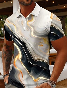 Hombre Mármol Polo Manga Corta Camisas de polo Camisas con cuello Informal de negocios Exterior Ropa Deportiva Ropa Cotidiana Bolsillo Impresión 3D Botones Verano Azul Piscina Azul cielo Dorado