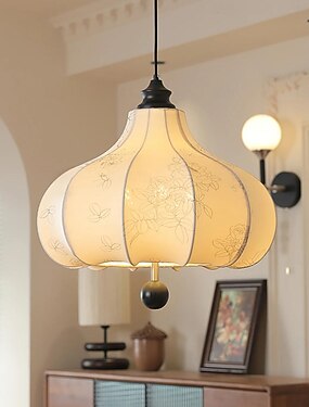 Lámpara colgante LED, material de tela, luz blanca cálida/blanca, E26 E27, cadena ajustable