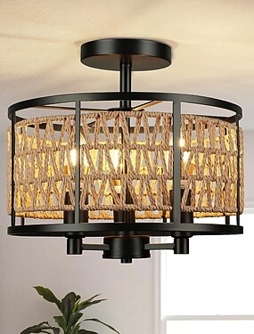 Lámpara de araña de ratán wabi-sabi, vintage, creativa, tejida a mano, para sala de estar y comedor.