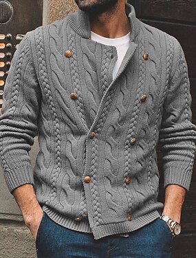 Hombre Chaqueta de Punto Cárdigan Suéter recortado Cable Tejer Regular Botones Color sólido Escote Chino Moda Clásico Vacaciones Ropa Cotidiana Ropa Otoño invierno Negro Color Caquí M L XL