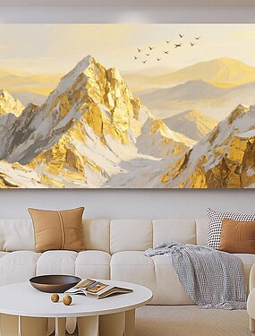 Grandes montañas doradas sobre lienzo, arte mural original de oro, textura 3D, empasto, paisaje natural abstracto, decoración bohemia, decoración para sala de estar y hogar.